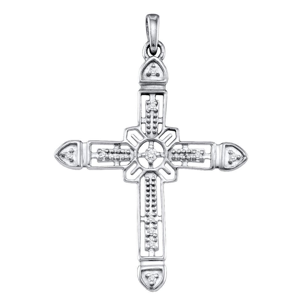Sterling Silver Womens Round Diamond Cross Pendant 1/20 Cttw