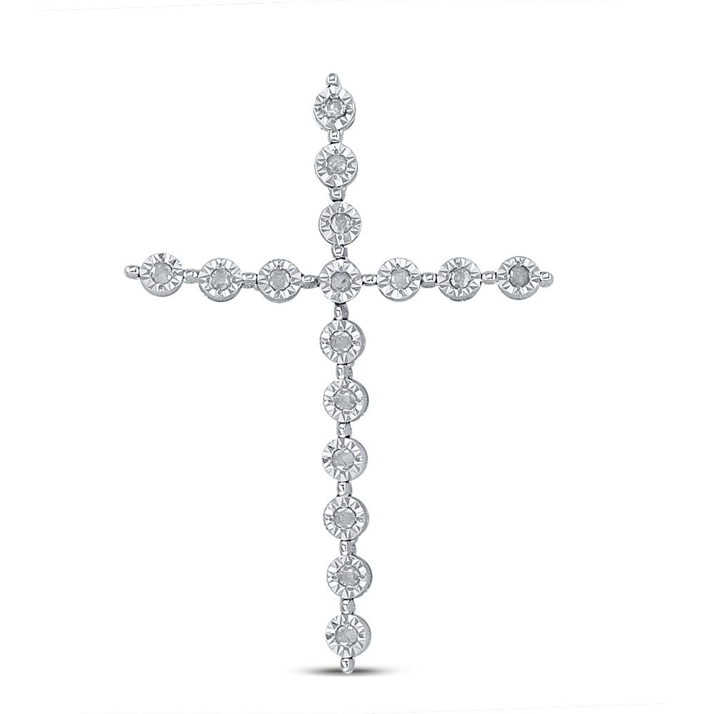 Sterling Silver Womens Round Diamond Cross Pendant 1/8 Cttw