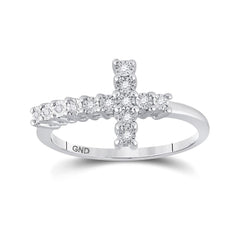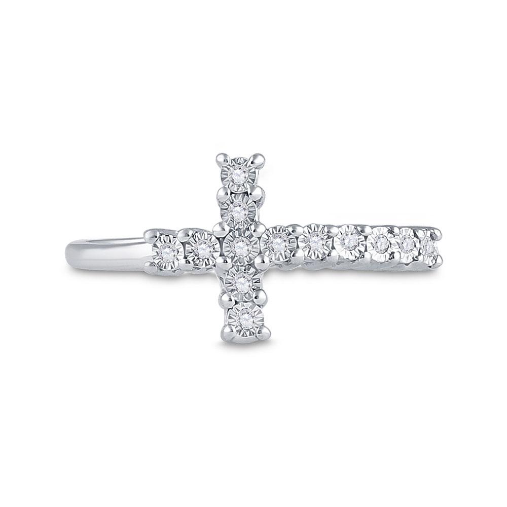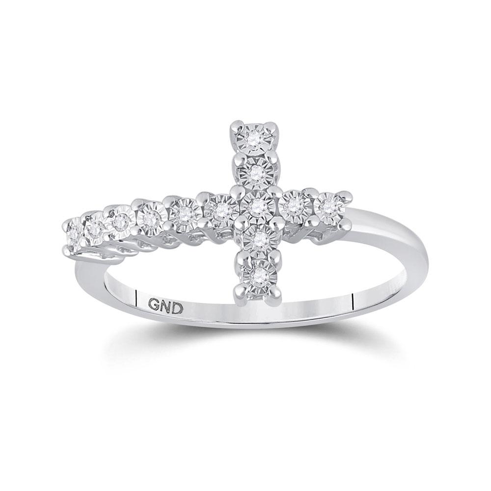 Sterling Silver Womens Round Diamond Cross Ring 1/20 Cttw