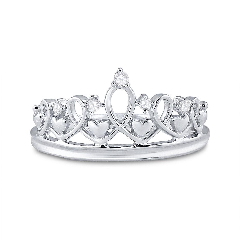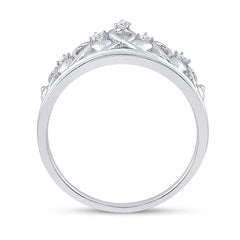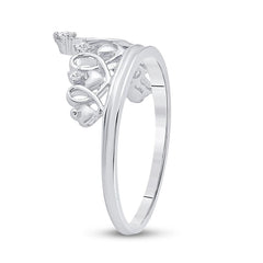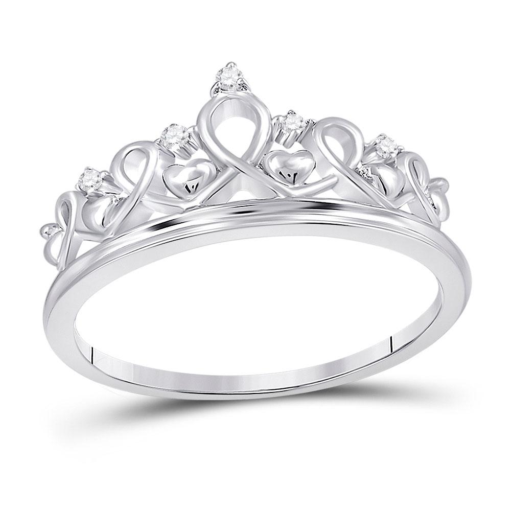 Sterling Silver Womens Round Diamond Crown Band Ring 1/20 Cttw