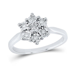 Sterling Silver Womens Round Diamond Illusion-set Flower Cluster Ring 1/10 Cttw