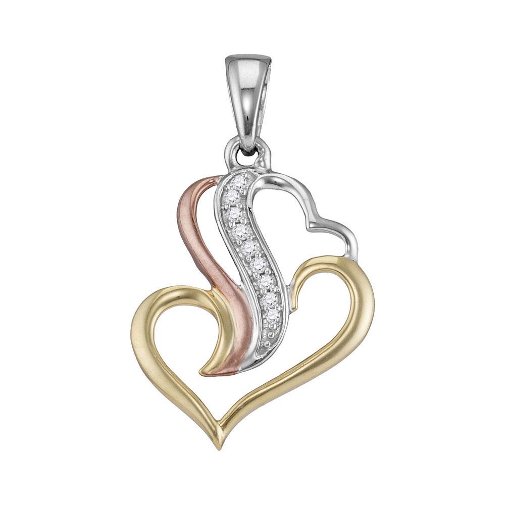 Triple-tone Sterling Silver Womens Round Diamond Heart Pendant 1/20 Cttw