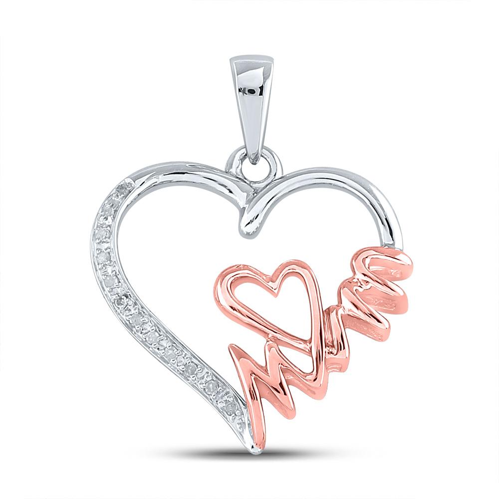 Two-tone Sterling Silver Womens Round Diamond Mom Heart Pendant 1/20 Cttw