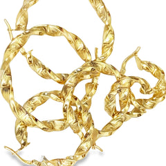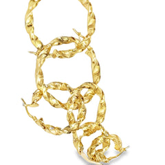 TRIO Yellow Gold Twisted Hoop Earrings 10K